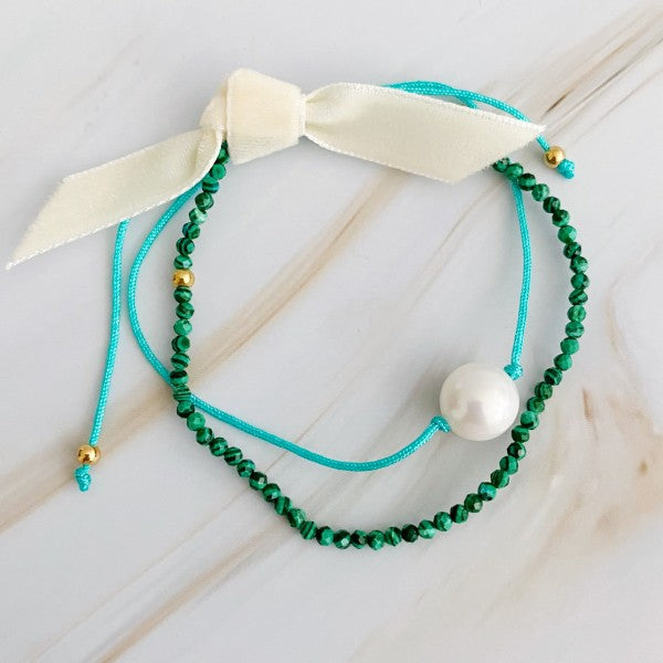 This Genuine Pearl Color Dream Bracelet Set features two exquisite and versatile bracelets made of a high-grade genuine freshwater pearl with colored thread and dainty sparkly glass beads. With subtle sparkles from glass beads, each piece is perfect for wearing alone or layering with other bracelets to create a unique look. A wonderful gift for birthday, Easter, graduation and more.